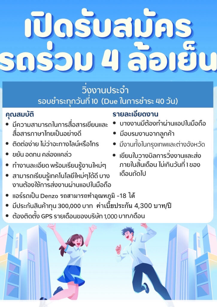 5.มีความชำนาญในเส้นทาง ทำงานเป็นมีประสบการณ์ในการทำงานรถขนส่งห้องเย็นอย่างน้อย 3 ปี ขึ้นไป รับสมัครตั้งแต่ อายุ 20 ปี ขึ้นไป และ ทำงานมีความละเอียด รอบคอบ