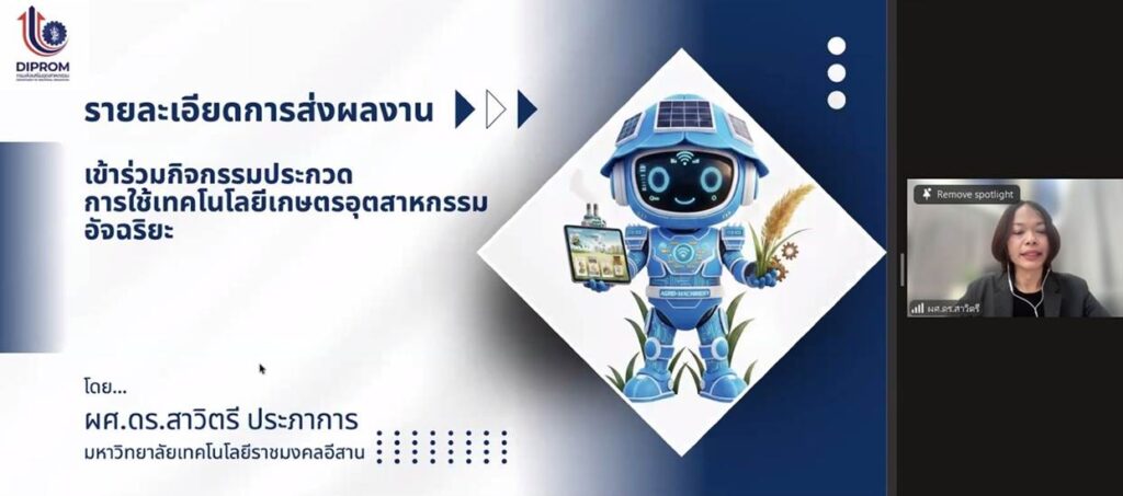 วันที่ 11 กุมภาพันธ์ 2569 กระทรวงอุตสาหกรรม โดยกรมส่งเสริมอุตสาหกรรม หรือ “ดีพร้อม” ได้จัดประชุมชี้แจง “การประกวดการใช้เทคโนโลยีเกษตรอุตสาหกรรมอัจฉริยะ 2569 (DIPROM Agro-Machinery Contest 2026)” ภายใต้โครงการยกระดับสินค้าเกษตรสู่เกษตรอุตสาหกรรม ผ่านระบบ Zoom Meeting เพื่อชี้แจงแนวทาง การดำเนินกิจกรรม หลักเกณฑ์การพิจารณา และผลที่คาดว่าจะได้รับให้หน่วยงานและผู้ประกอบการที่เข้าร่วมกิจกรรมได้รับทราบ
