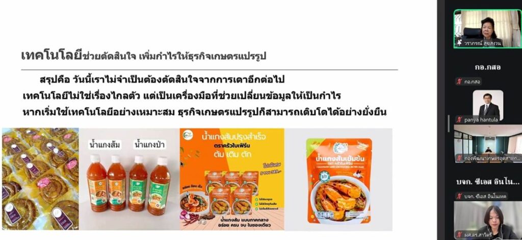 ขณะที่ คุณวราภรณ์ สุขสงวน กรรมการผู้จัดการ บริษัท เคเทอร์พลัส จำกัด ได้ถ่ายทอดประสบการณ์ในหัวข้อ “เลิกเดา ใช้เทคโนโลยีตัดสินใจ เพิ่มกำไรให้ธุรกิจเกษตรแปรรูป” โดยเน้นการใช้ข้อมูลและระบบดิจิทัลในการวางแผนการผลิต การควบคุมคุณภาพ และการบริหารต้นทุน เพื่อสร้างความยั่งยืนทางธุรกิจ